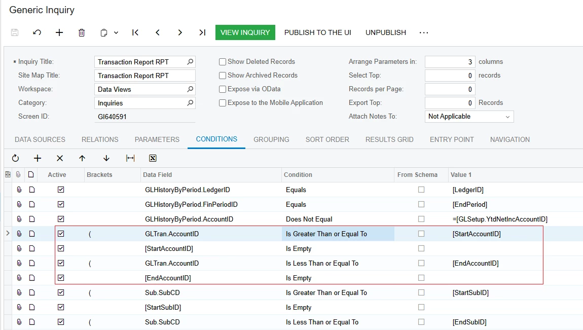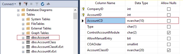 Because AccountCD is of nvarchar data type but you use the comparison operator "Is Greater Than or Equal To" which is only used for int data type.