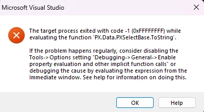 Hello, after doing T200 and T210 trainings I started my own project. I’ve added a tab to Opportunities page and added PXTextEdit and PXButton to it. When debugging it using VS it gives me an error whenever I try to see a value of any variable.