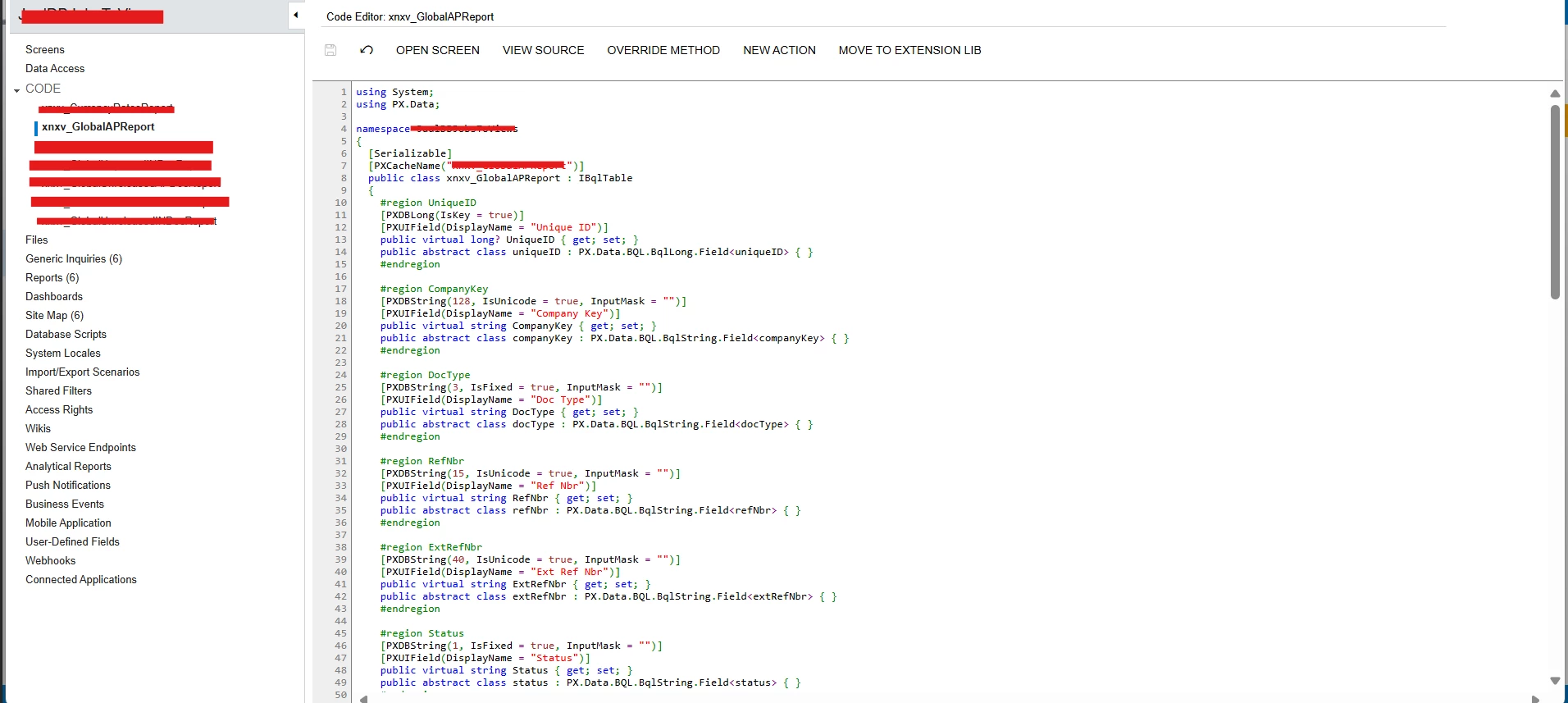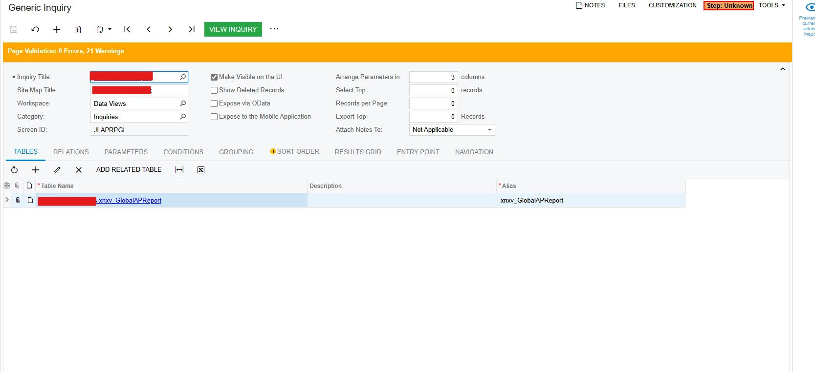 Generic Inquiry is created from the Customization Project, where Custom DAC is created from “View”(xnxv_GlobalAPReport) in SQL