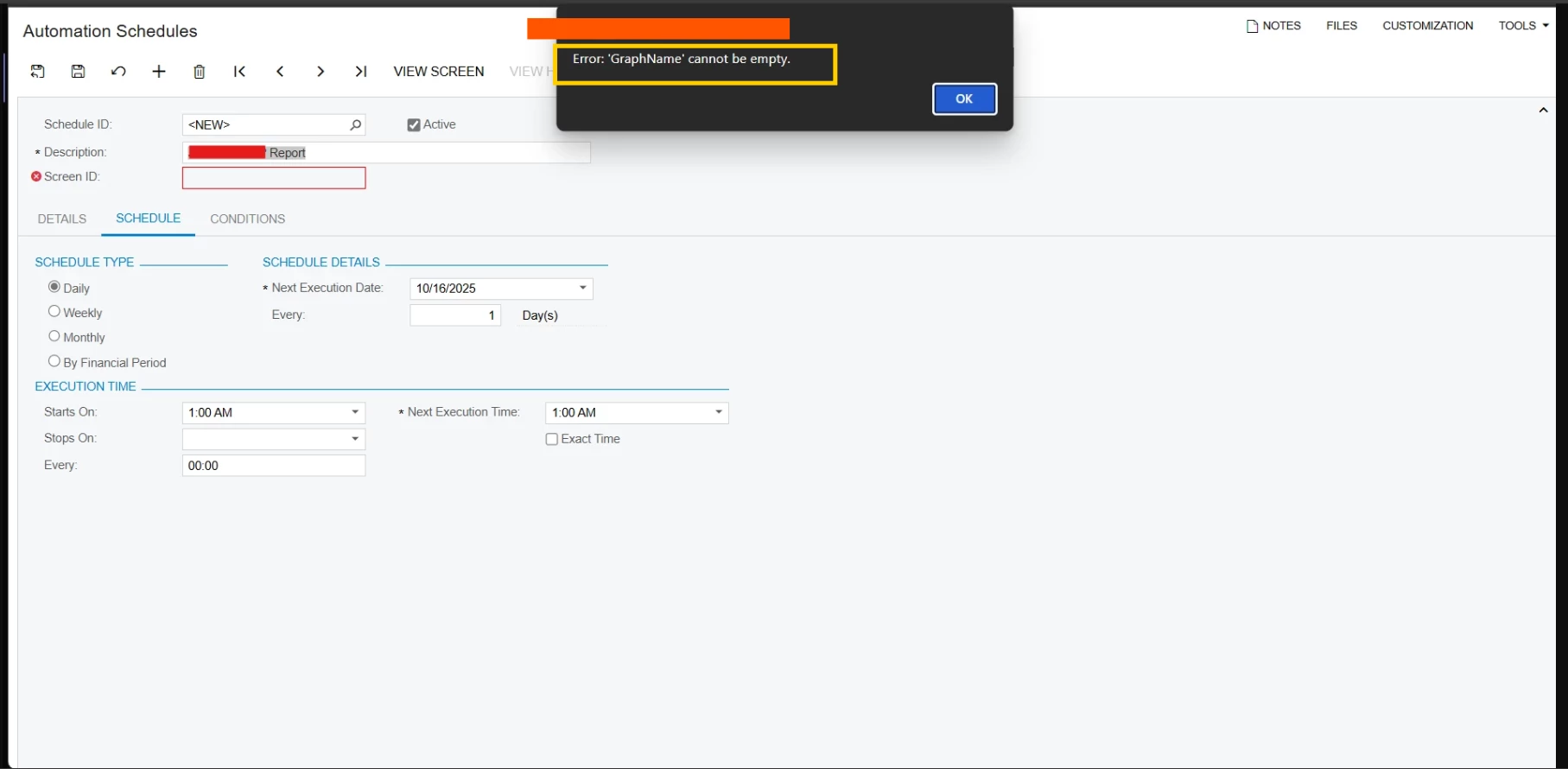 - This screen can not be automated, although the screenID was not empty while saving