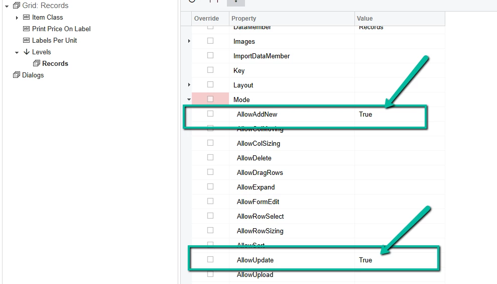 I can see the “+” symbol but it’s disabled which doesn’t make sense since I added the Mode (AllowAddNew). I can add rows in SQL and they show up fine but I can’t edit the values or add new rows in the new customized screen.