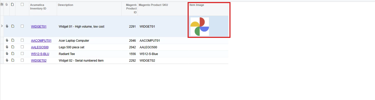 When I change the ItemImageURL with the Acumatica stock item image URL, the screen opens, but the image is still not displayed