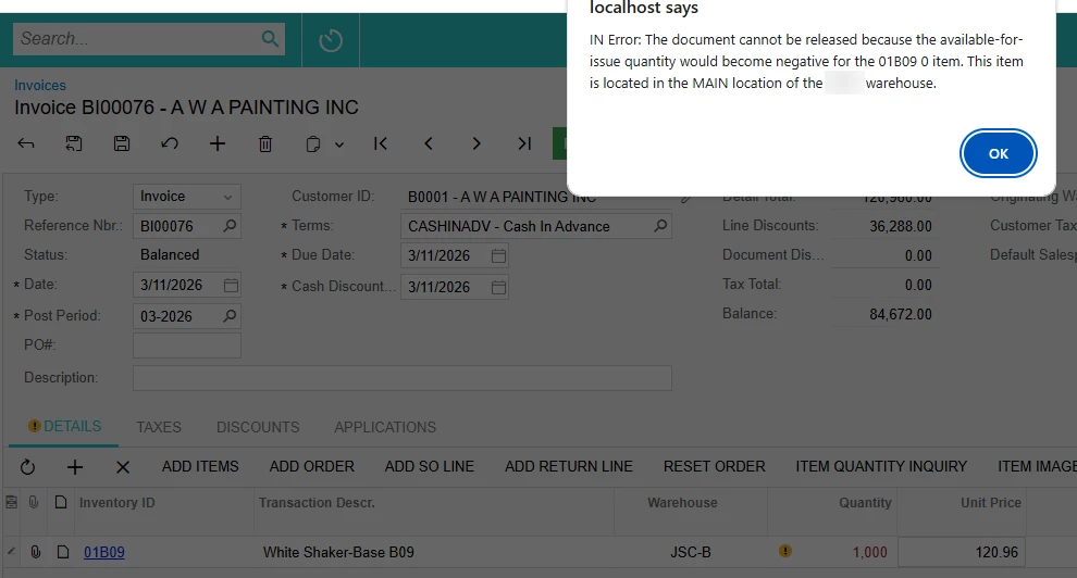 @jhalling52 I don’t want to allow saving or releasing the document when the quantity is less than 10, for example. I want to implement this on the same level where Acumatica does it.