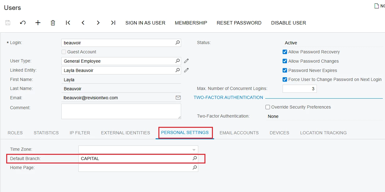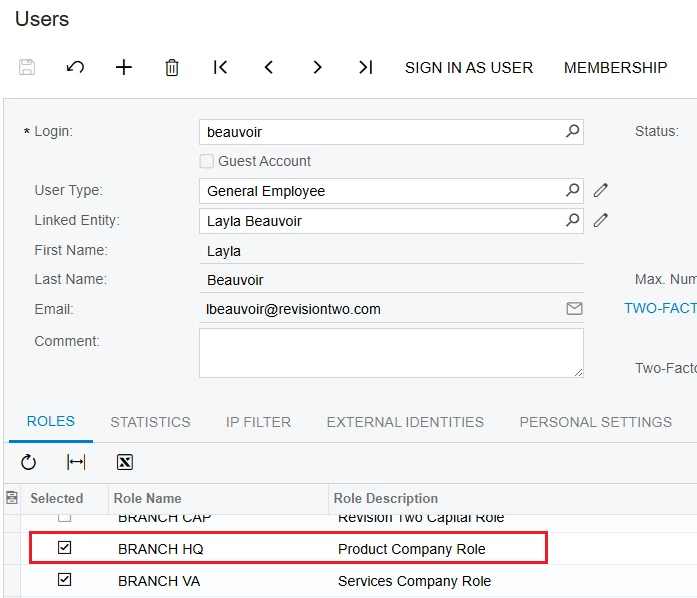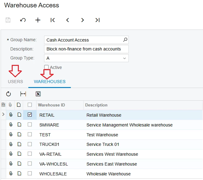 1/. Because each Warehouse in Acumatica is tied to a Branch, you can use "Warehouse Access" screen to restrict users from accessing Branches through the Warehouse.