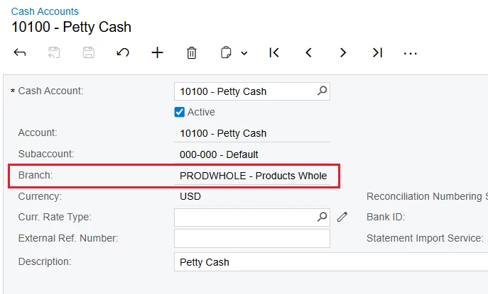 2/. And because each Cash Account in Acumatica is required to be linked to a Branch, you can use the "GL Account Access" feature to restrict users from accessing Branches through Cash Accounts.