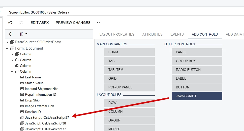 I want to add this script on page load of Custom screen. I have try with Acumatica customization editor but when I have added this script inside asp control ...while generate script it has gone….please help