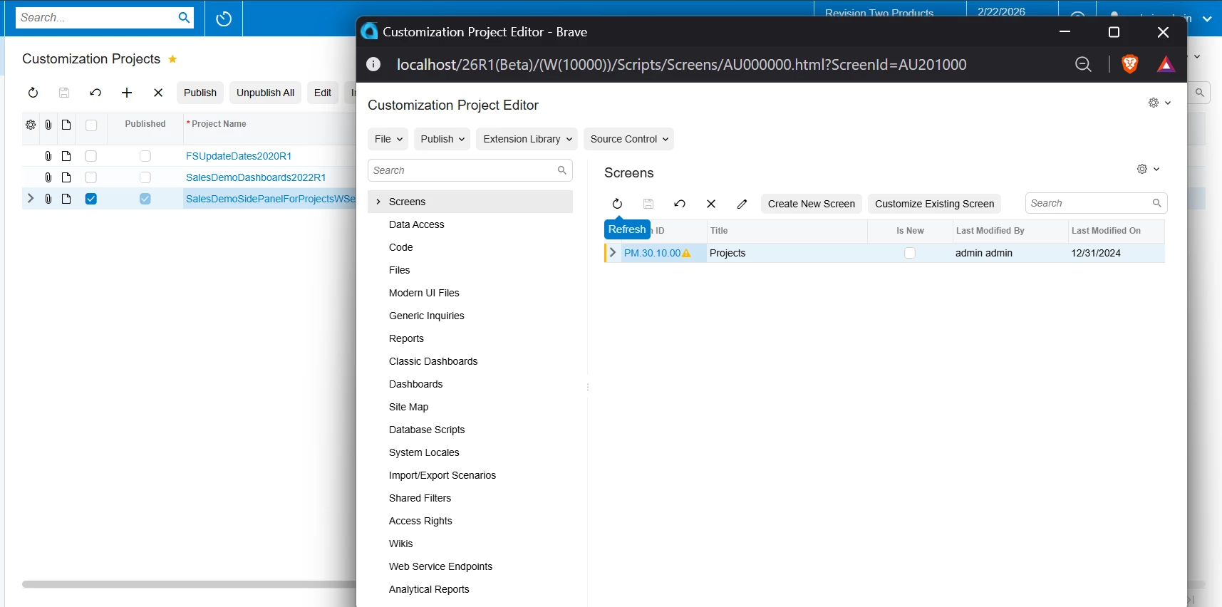 For context, I need to open and edit my customization projects, manage access rights, generic inquiries, and other project components.