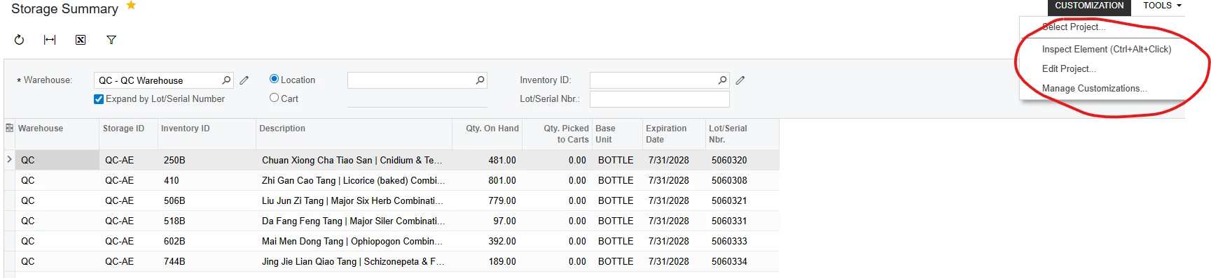 Thank you for your reply. Since I would like to edit this customization project, I noticed that the Storage Summary screen is not visible. I have full access to the customization project. Also, this project uses the Data Class: StoragePlaceStatus, but I’m unable to find StoragePlaceStatus in the system. I also have full access to our company’s Data Classes.