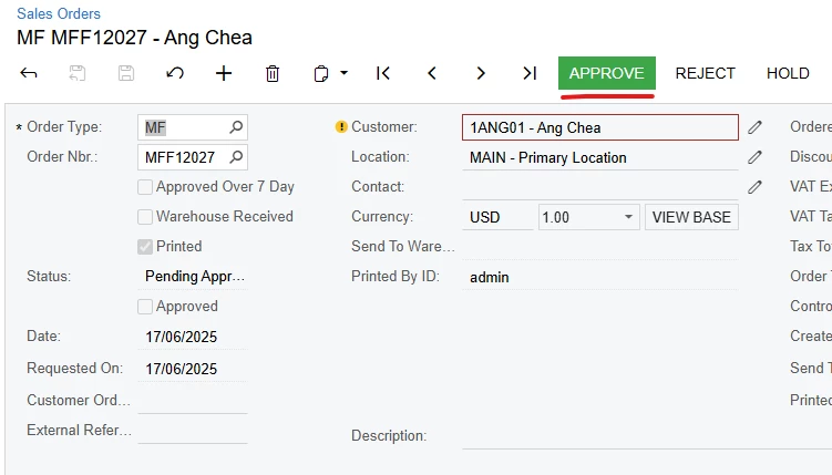 Method Void Approve(PX.Objects.SO.SOOrder, ApproveDelegate) in graph extension is marked as [PXOverride], but the original method with such name has not been found in PXGraph