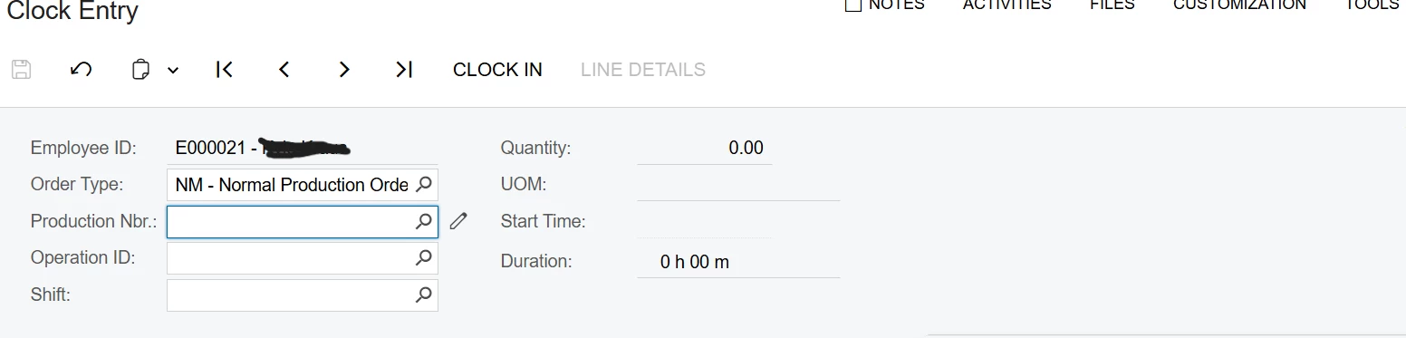 I see the Selector “EmployeeID” is available in the Clock Entry screen with Acumatica Version 2024.R1