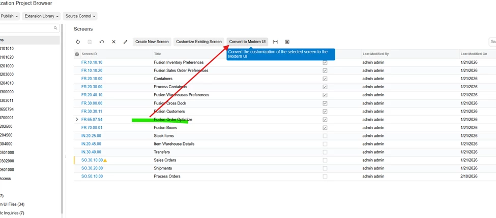 The screen loads correctly in Modern UI, but the action no longer applies the row coloring in the grid.