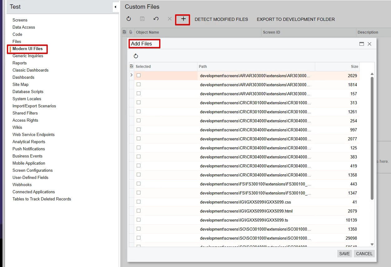 How can we include the build file to my customization ui file. Because when I browse from file or moder ui file I cannot see it. But in file I can see development file in screen folders. Please guide me.