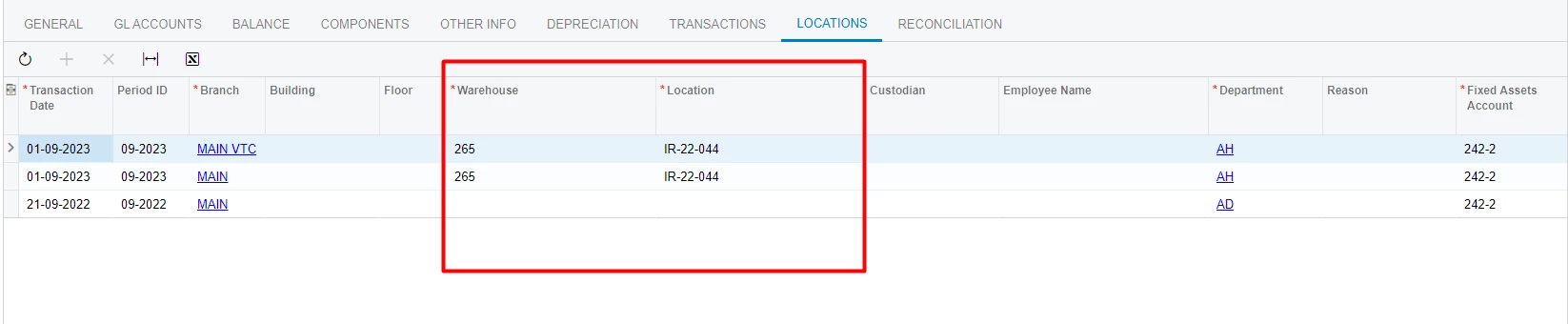 Now I want 2 field Warehouse and Location change value => insert new row into FALocationHistory table (behavior same field Department).