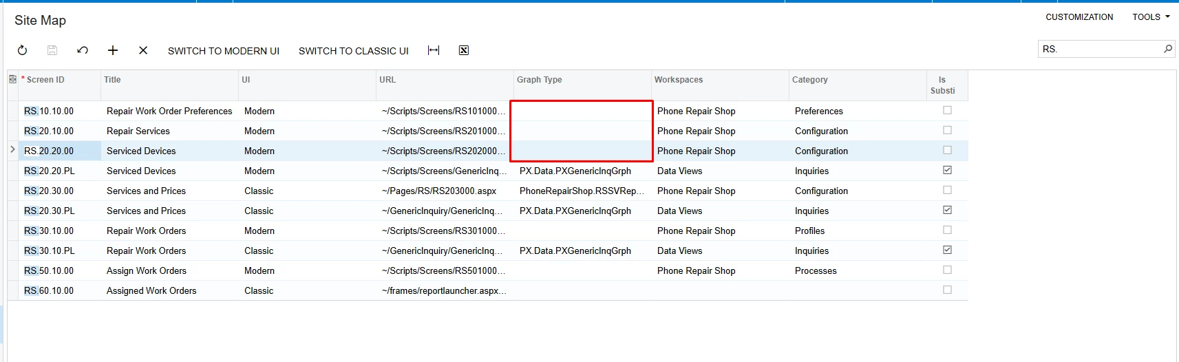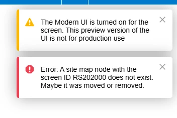 Could you help me with the issue of Graph Type on Sitemap for Modern UI files. It works fine on my first instance (where i converted forms), Graph Type is displayed and bound correctly. But on another instance, where i importing project, and after publish the files the sitemap doesn't reference the Modern UI files and Graph Type is empty. Too, i can`t open a forms, example RS202000 ---> Error on screenshot.