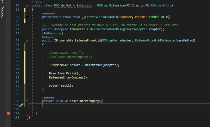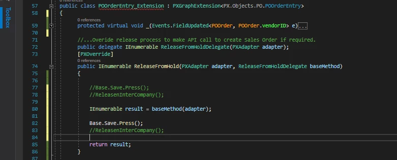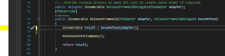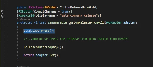 Have been battling with an issue with an override to ReleaseFromHold in POOrder Entry.