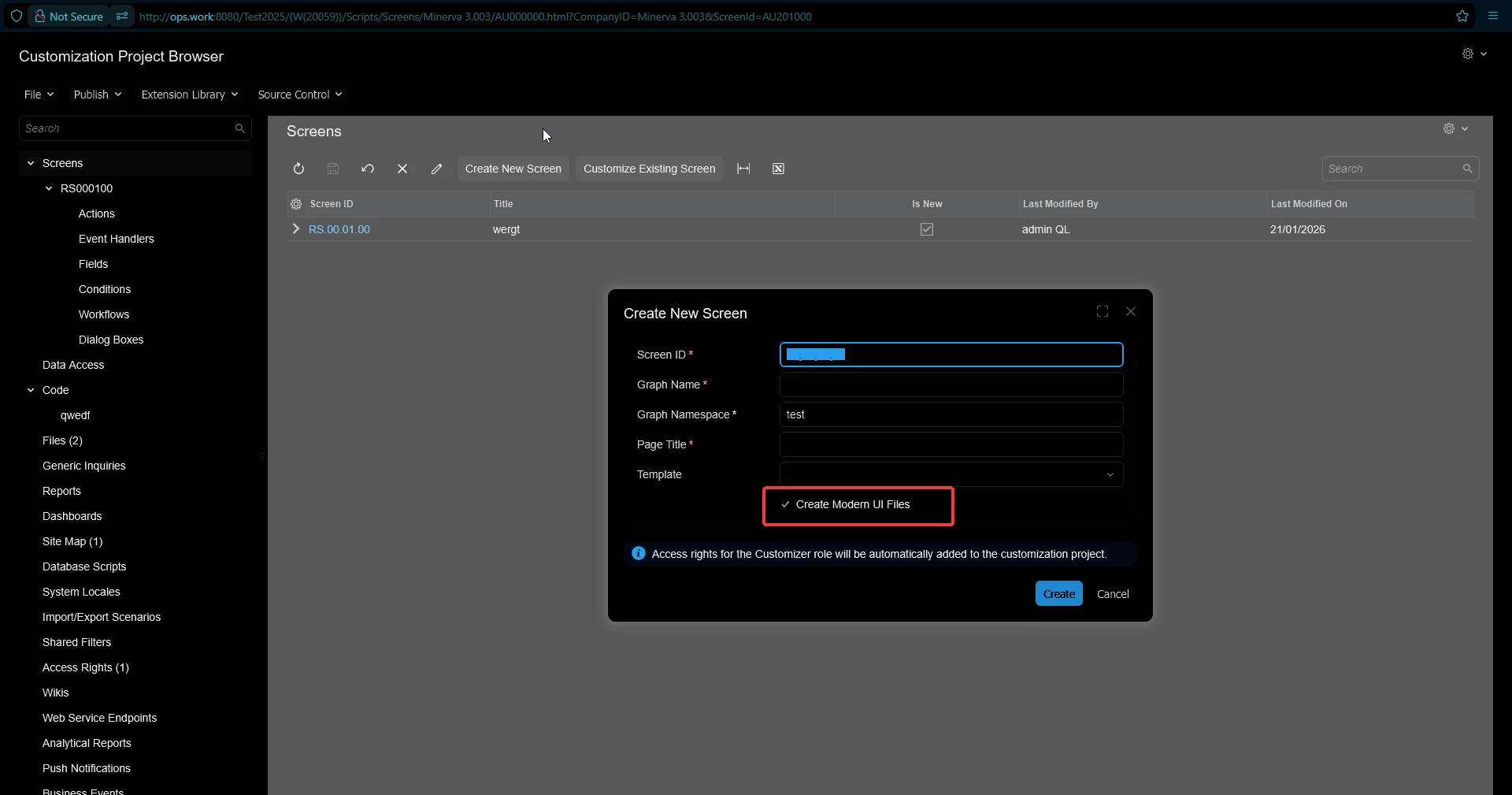 The version I’m using is 2025 R2 Build 25.200.0248 and the issue is that the Modern UI Files and the rest of that functionality is missing from the Customization Project Editor even tho the build version I’m using is the latest and inside the other instance I’m having for the Acumatica tutorials is working absolutely fine. Here’s a screenshot of a fresh customization inside the problematic instance I’m using