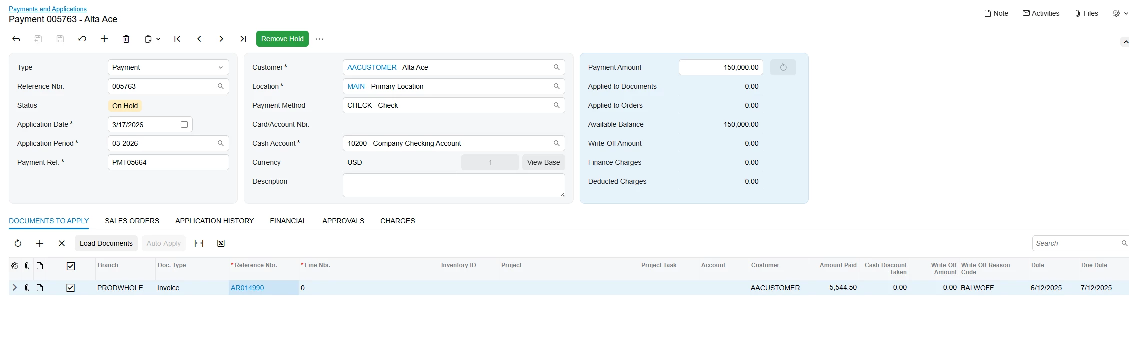 We are building a remittance automation tool that needs to create an AR Payment and apply it to multiple invoices (1,300+ lines) via the REST API in Acumatica 25.200.001.