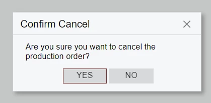 However, canceling the production order causes a dialogue box to pop-up with the message,