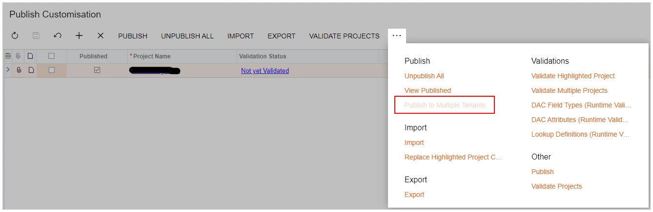 When I publish from one tenant some changes like the ones on the screen is added to other tenants as well. Basically other tenants do get a half baked customisation. As a workaround I exported and imported the same customisation to all tenants and published individually. Is this okay to do?