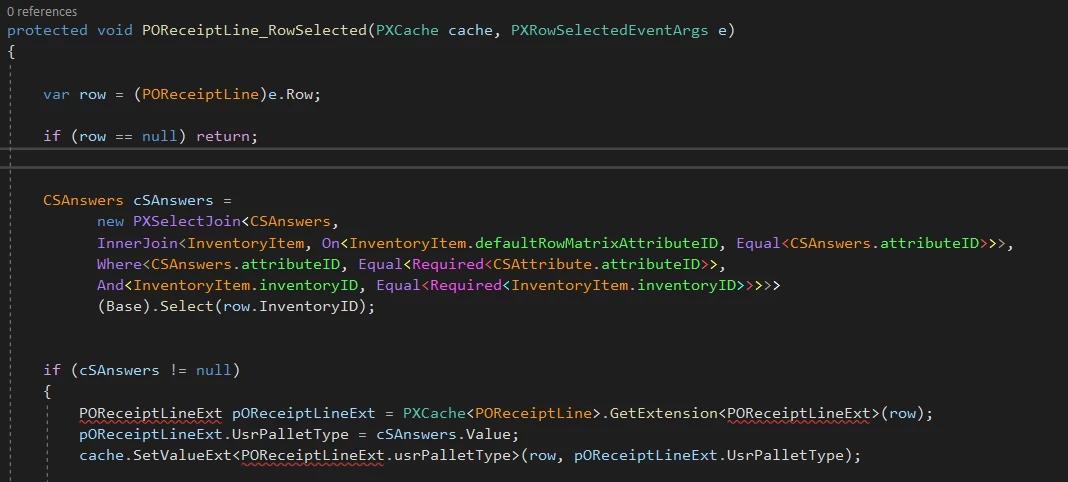 I need get “CSAnswer.Value” to “PORecieptLine” Using row selected. How can i achived that.