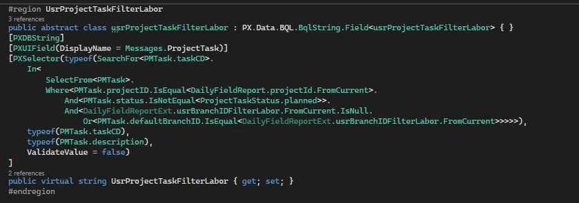 Or<PMTask.defaultBranchID.IsEqual<DailyFieldReportExt.usrBranchIDFilterLabor.FromCurrent>>>>>),