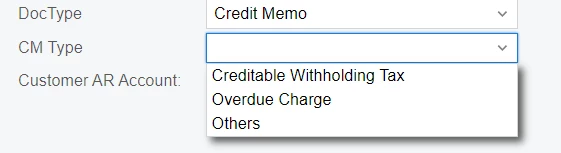 for example i will choose credit memo on doctype