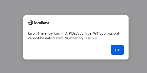 I’ve created a custom screen where auto numbering is used. When I access the screen I get the following message.