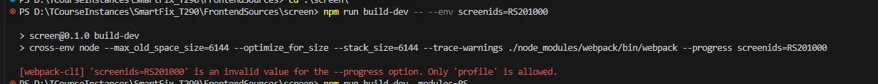 PS D:\TCourseInstances\SmartFix_T290\FrontendSources\screen> npm run build-dev modules=RS
