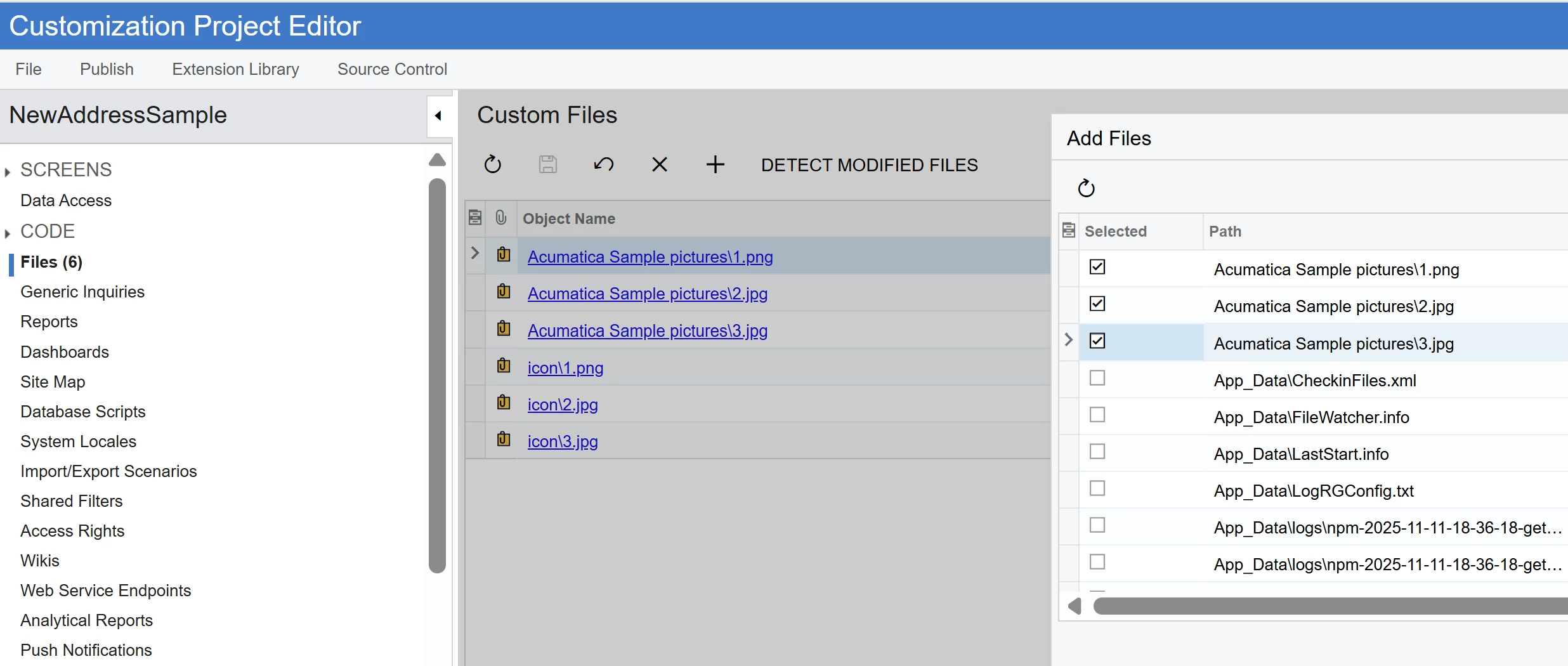 I’m trying to add photos to a files customization project, however I don’t see them on the list of add files to add. I believe my added photos are in the right spot, but I don’t see them. Are they in the right place?