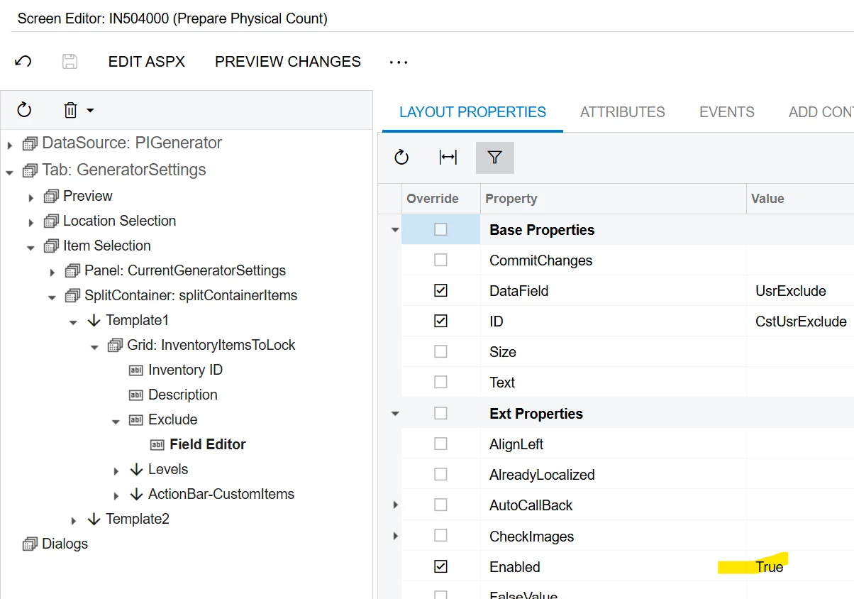 [PXUIField(DisplayName = "Exclude", Enabled = true)]