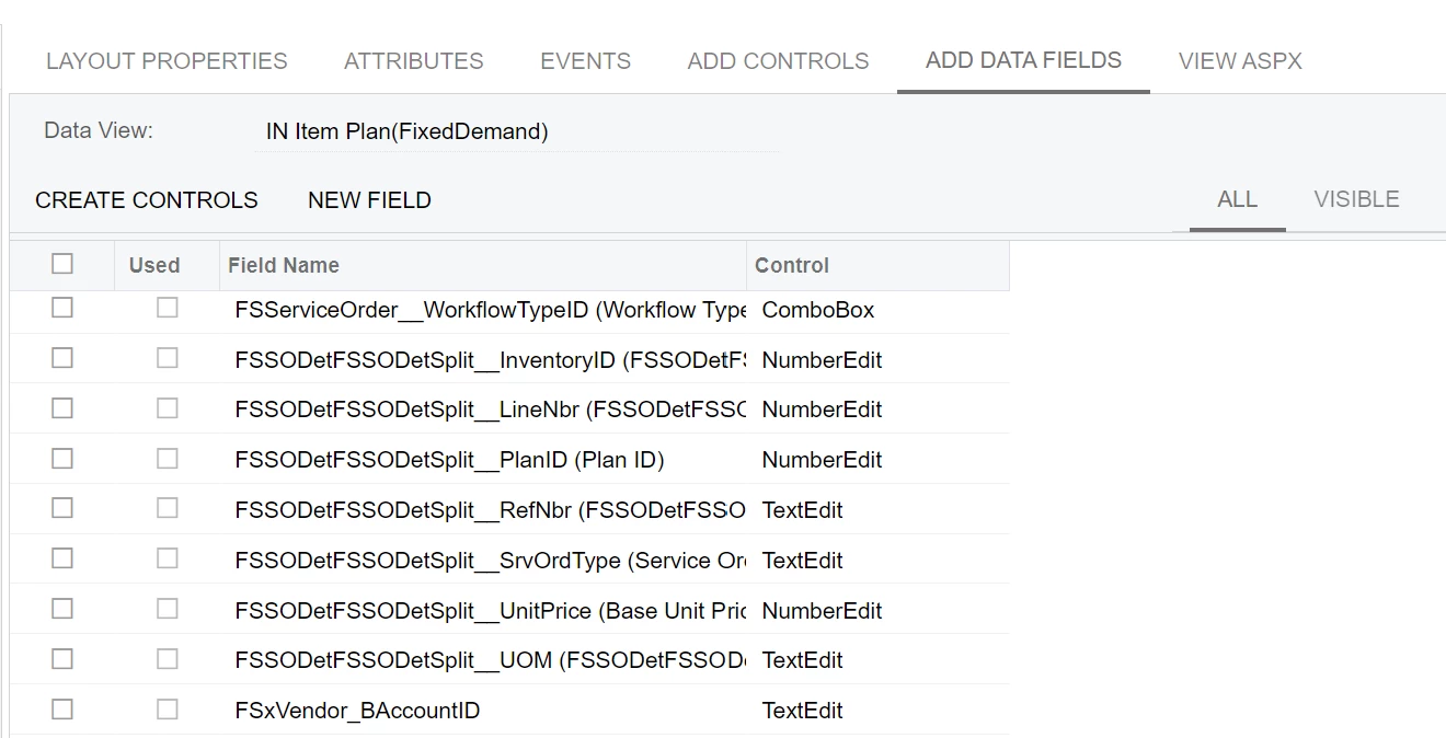 Why Aren't all Fields from [FSSODetSplit] available in Customization Editor?