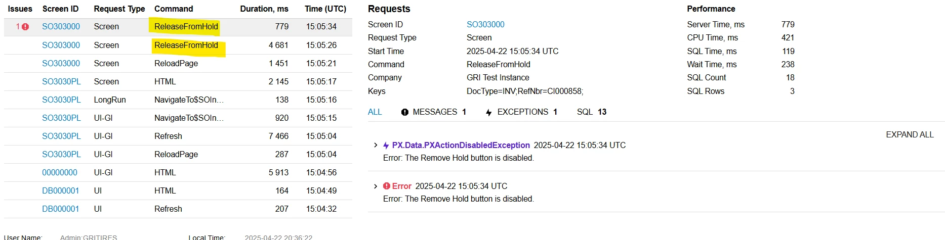 • In the trace, I can see that two commands related to RemoveHold are getting triggered.
