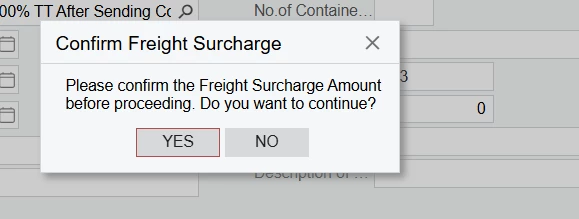 "Please confirm the Freight Surcharge Amount before proceeding. Do you want to continue?",