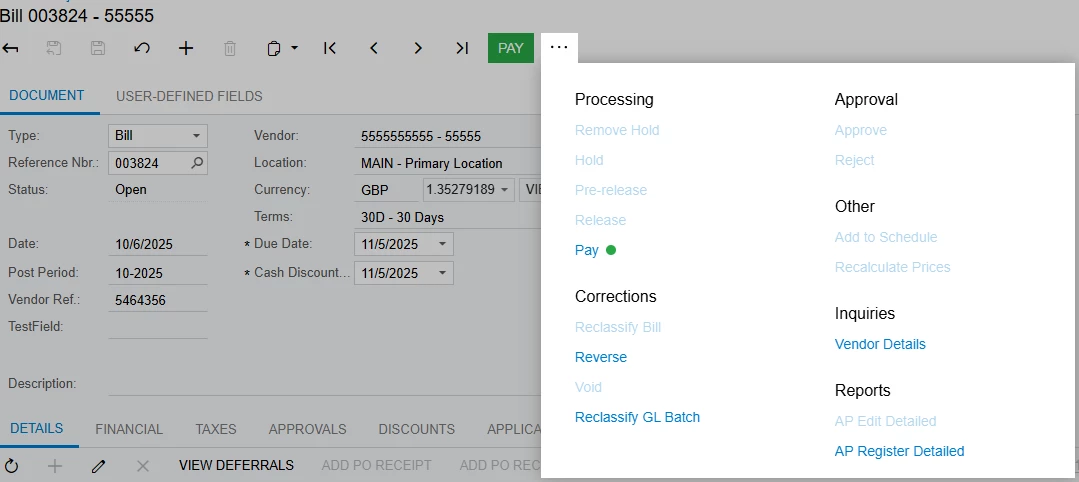 We need to allow our client to complete all actions with the Bill before it can be approved.