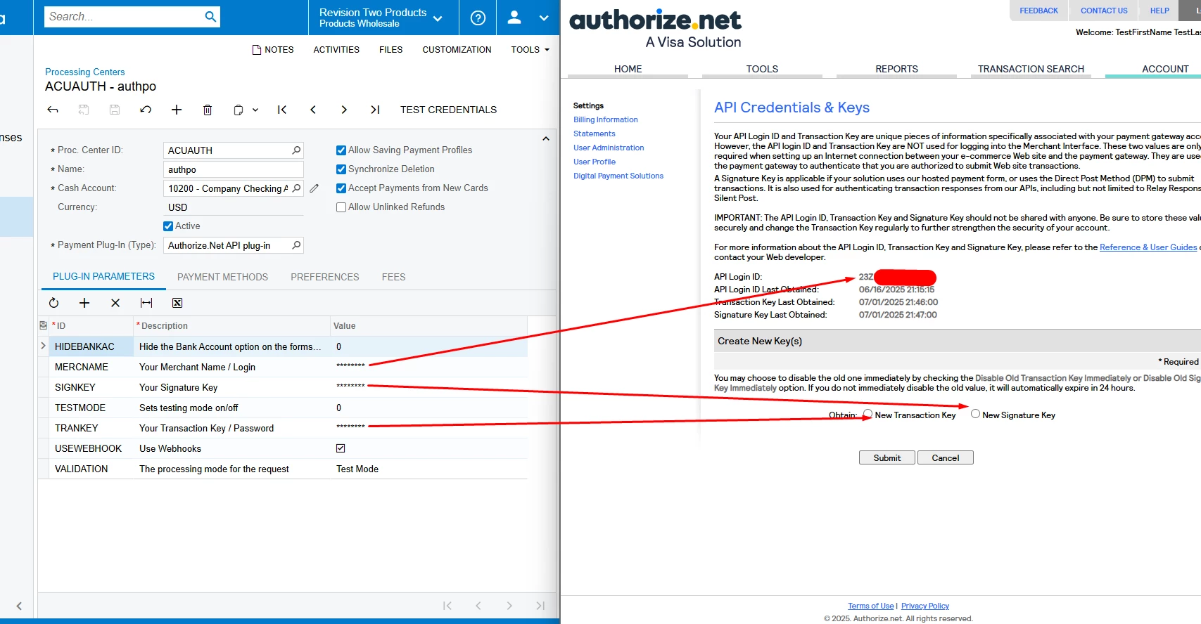 I'm currently setting up Authorize.Net sandbox integration in Acumatica (on a local demo environment), and I’m encountering the following error when testing credentials: