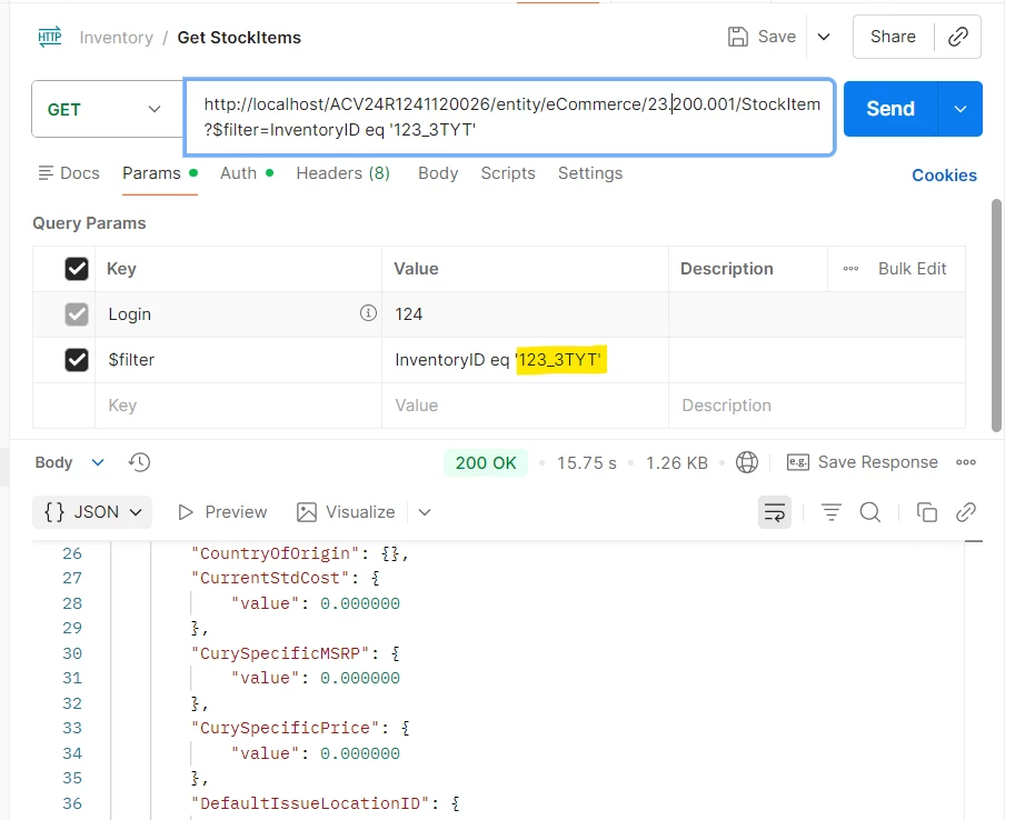 If i make a request with ?$filter=InventoryId eq ‘TEST_1’ it cannot find it but it can find it with ?$filter=Description eq ‘TEST_1’.