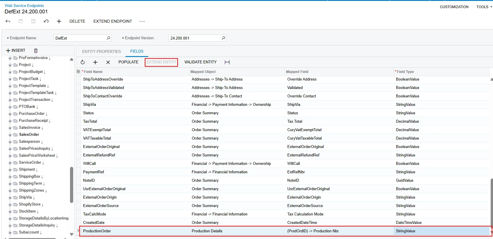 I would like to manually assign a Production Order ID to a specific line item on a sales order. Can I do this via the API? If so, how? The SalesOrder endpoint does not seem to have these fields available.