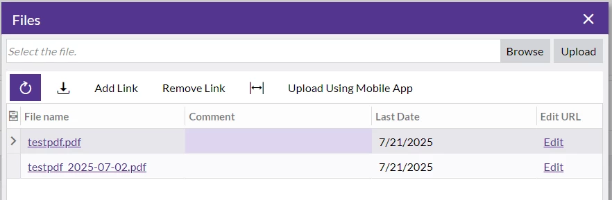 This works well — the file is successfully attached and visible under the Files tab on the customer screen.