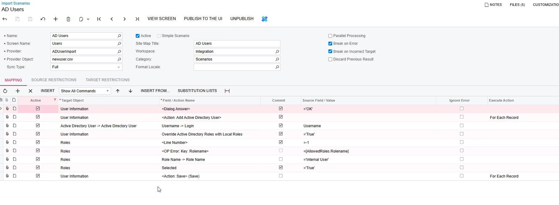 Is it possible to create the Active directory user via API or Import scenario. The import doesn't create the user, even though it completes the import.