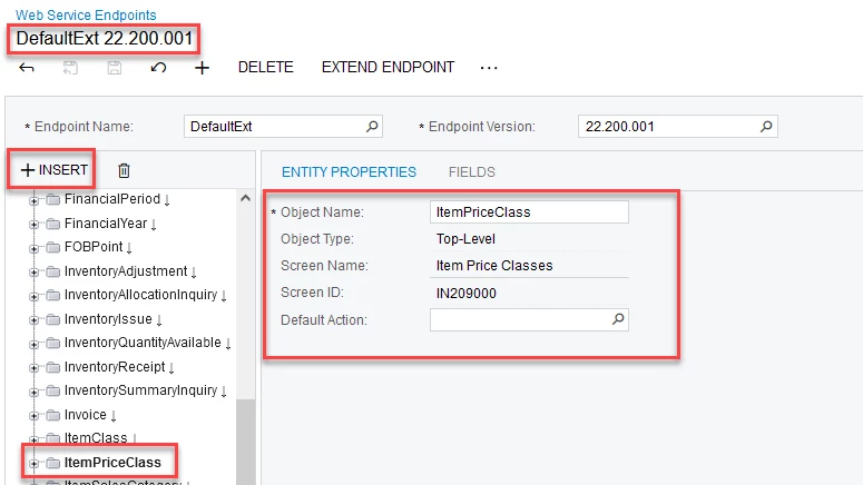 I’m changing from using SOAP-based API to REST API.  Is there an equivalent to the IN209000Export and IN209000Submit?  I can’t find the web service endpoint that can either retrieve or add new Item Price Classes (ScreenId=IN209000)
