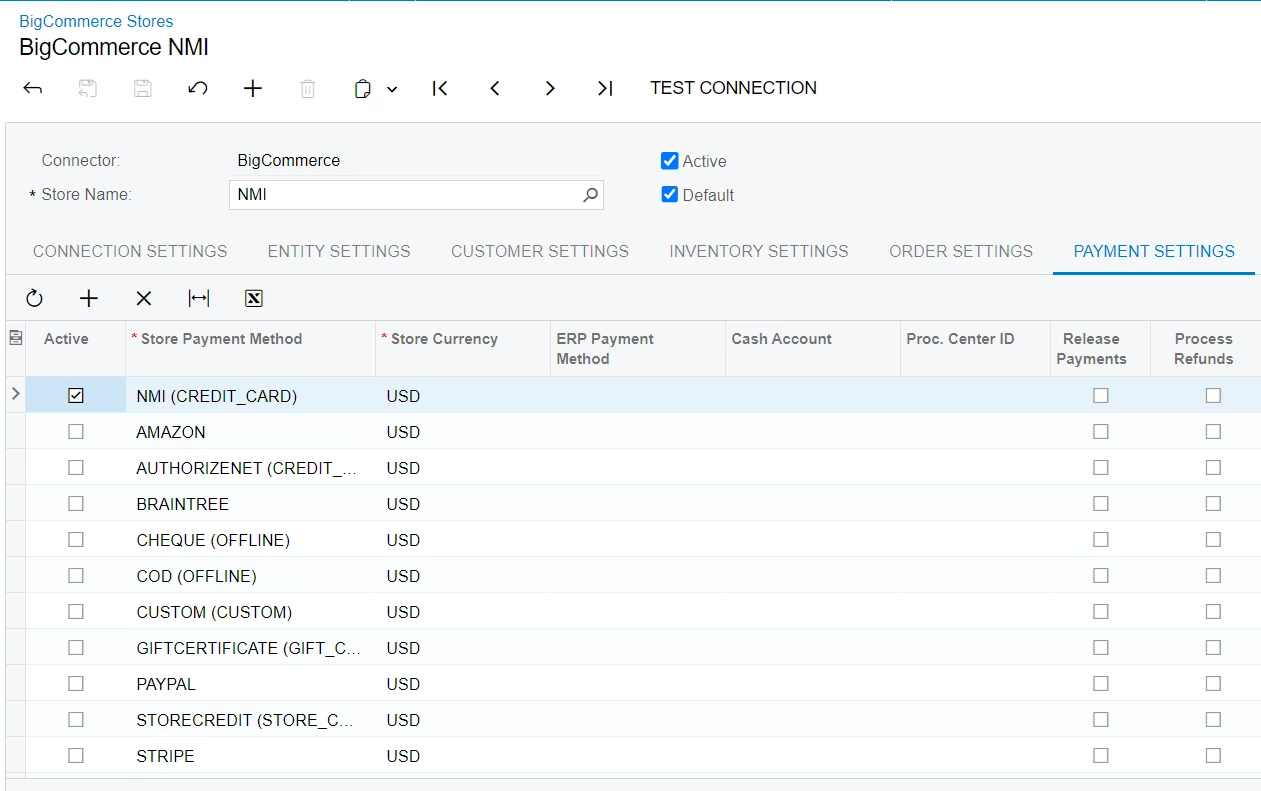 This link helps you to map the payment methods configured in the BigCommerce store with the payment methods defined in Acumatica ERP.