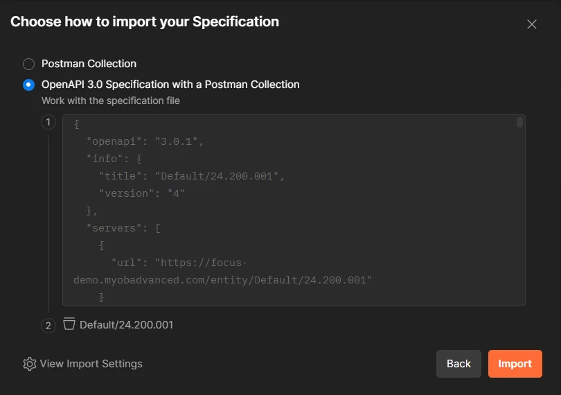 Having issues trying to Import the Acumatica Endpoint as a Postman collection.