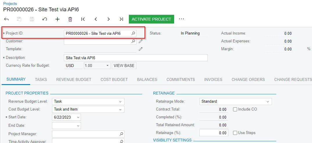 i’m sending a POST request to create Project in Acumatica but it not throwing an Error at all it showing success but i can’t find it in Acumatica