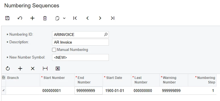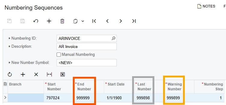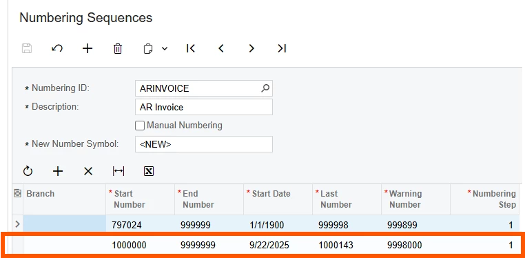 There is a Acumatica customer that is about to reach the end value of their ARINVOICE sequence.