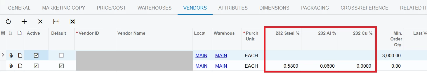 We are using the Distribution module as as of January 2026 are required to capture attributes for product.  We can set it up on the stock item tab once if it’s based on the item (only 1 vendor).  If there are multiple vendors for the item, how can we setup the attributes to be specific to the vendor?  I realize there is a way to capture the attribute at the lot/serial number level however that would require entry for each item receipt. (Lot of work!)