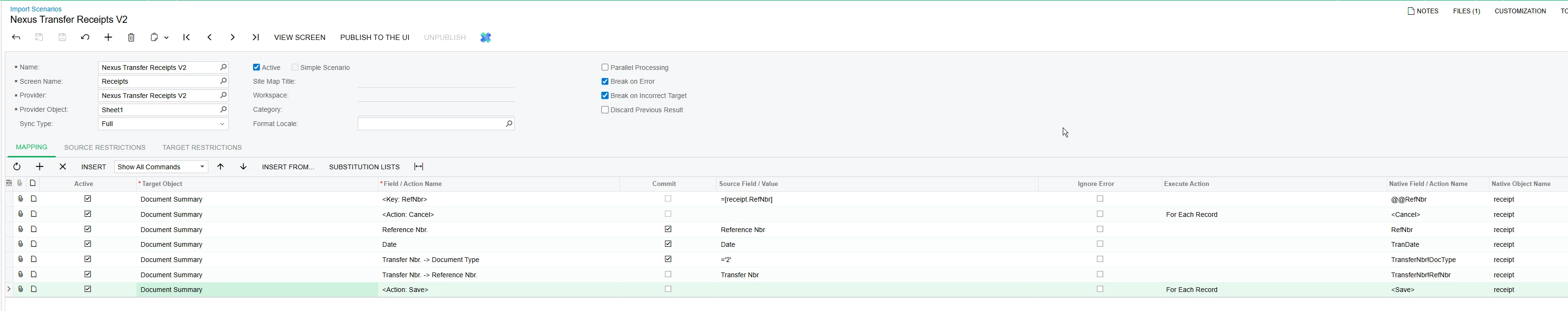 hi! i am trying to create a business event to automatically create the receipt once the 2 step transfer is complete. i got the business event to create the receipt transaction but the transfer number isn’t populating so the details aren’t coming in. is there something that i’m missing in my import scenario?