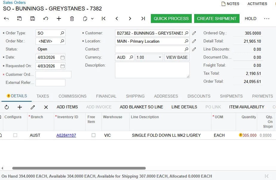 Currently, the system uses the “Available” quantity to validate stock when creating a Sales Order. As a result, a warning message is triggered when there is insufficient “Available” stock (please refer to the attached screenshot).