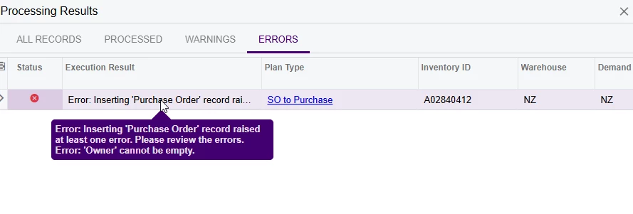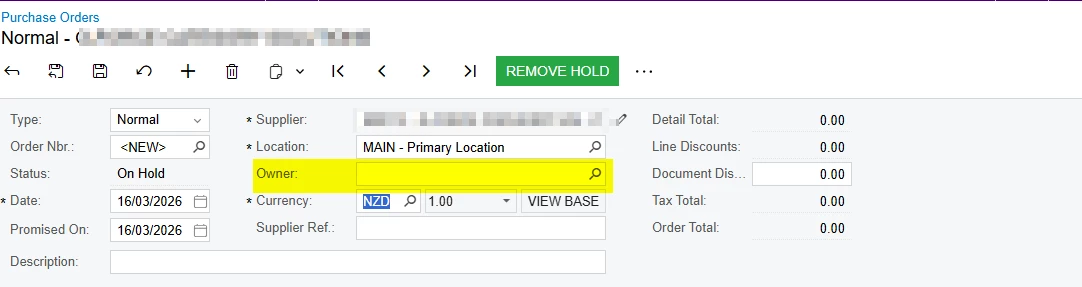 Create Purchase Order Automation Issue - No Linked Entity for the Admin User (MYOB Acumatica)