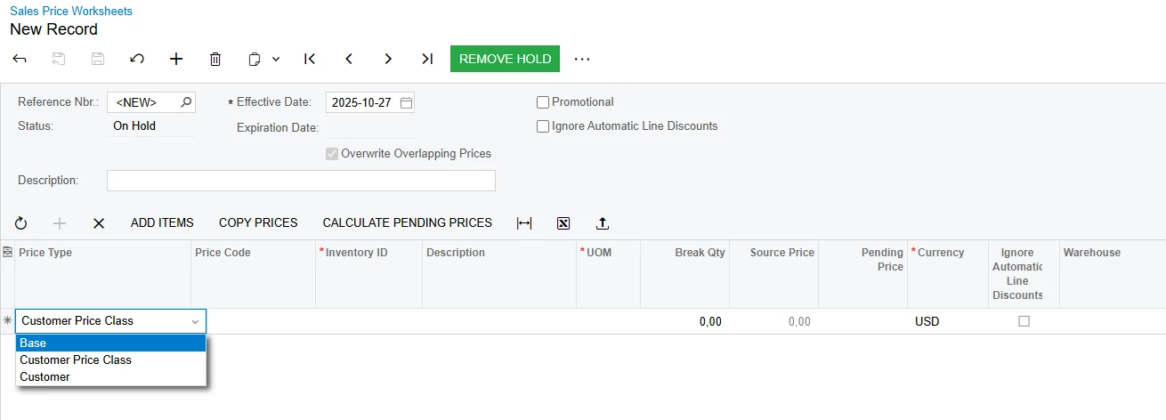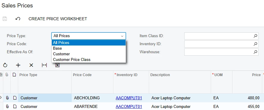 We have applied price types in the "Sales Prices" & "Sales Price Worksheets" screens. What is your question?