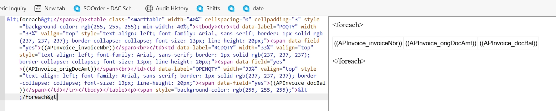 <foreach view=""> <foreach view="Transactions">